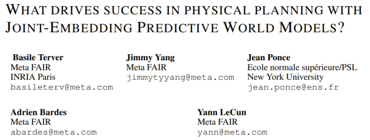 论文标题:WhatDrivesSuccessinPhysicalPlanningwithJoint-EmbeddingPredictiveWorldModels?